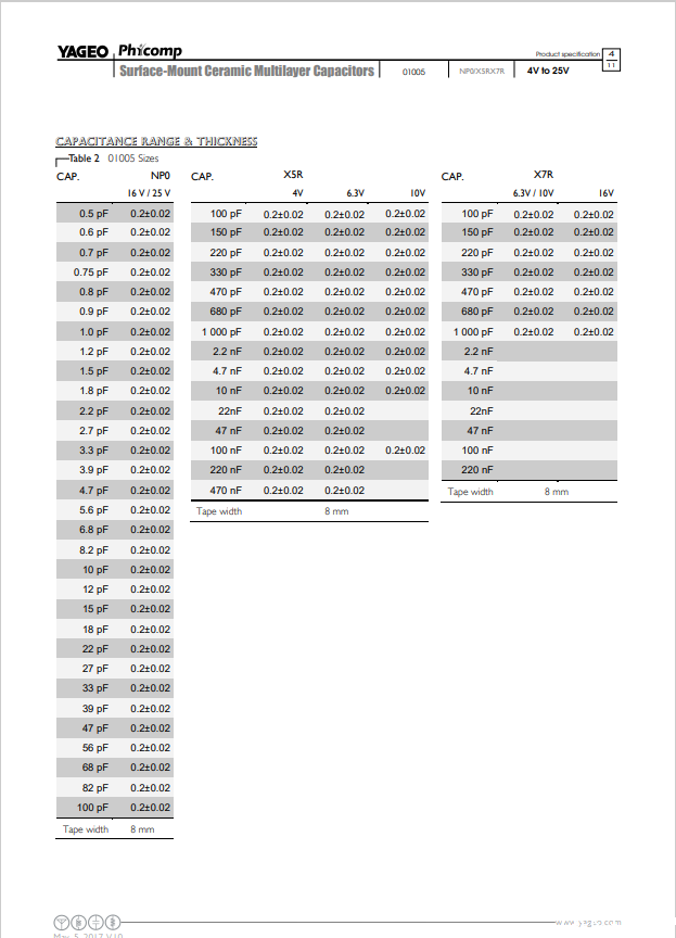 系列名称(RC/RT/RJ/RV等)后面的4位数表示尺寸,如0100,0201,0402,0603,0805,1206,1210,1218,2010,2512等等。