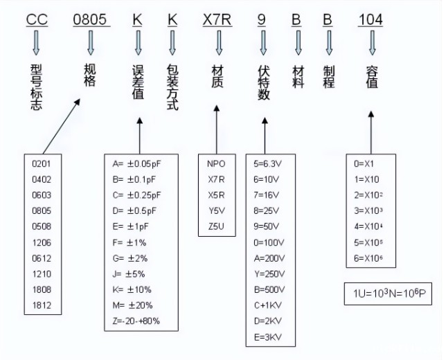 误差:电容的容量值可能存在一定的误差,如K表示±10%的误差。