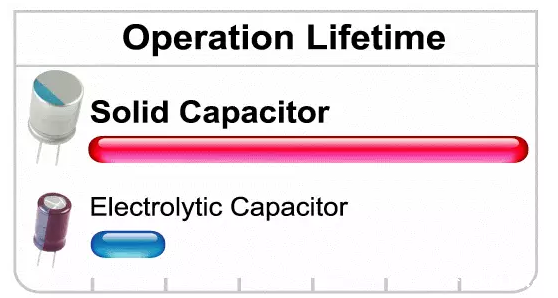 固态电容全称为:固态铝质电解电容。它与普通电容(即液态铝质电解电容)最大差别在于采用了不同的介电材料,液态铝电容介电材料为电解液,而固态电容的介电材料则为导电性高分子。