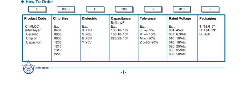 禾伸堂贴片电容大致参数选型表如下