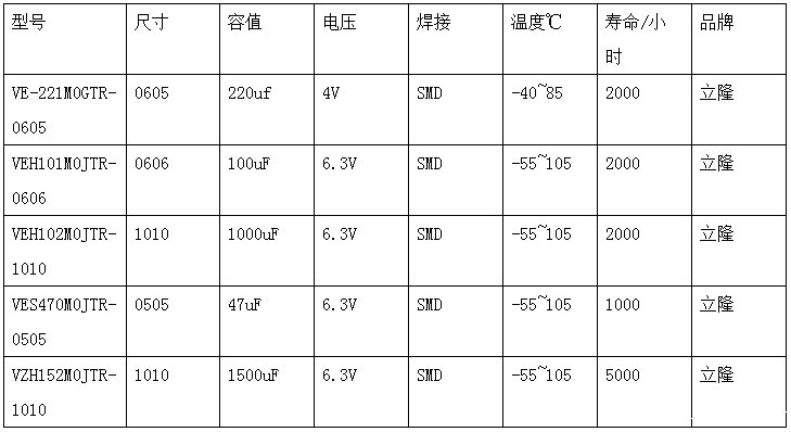 lelon(立隆)贴片铝电解电容部分产品型号选型如下表